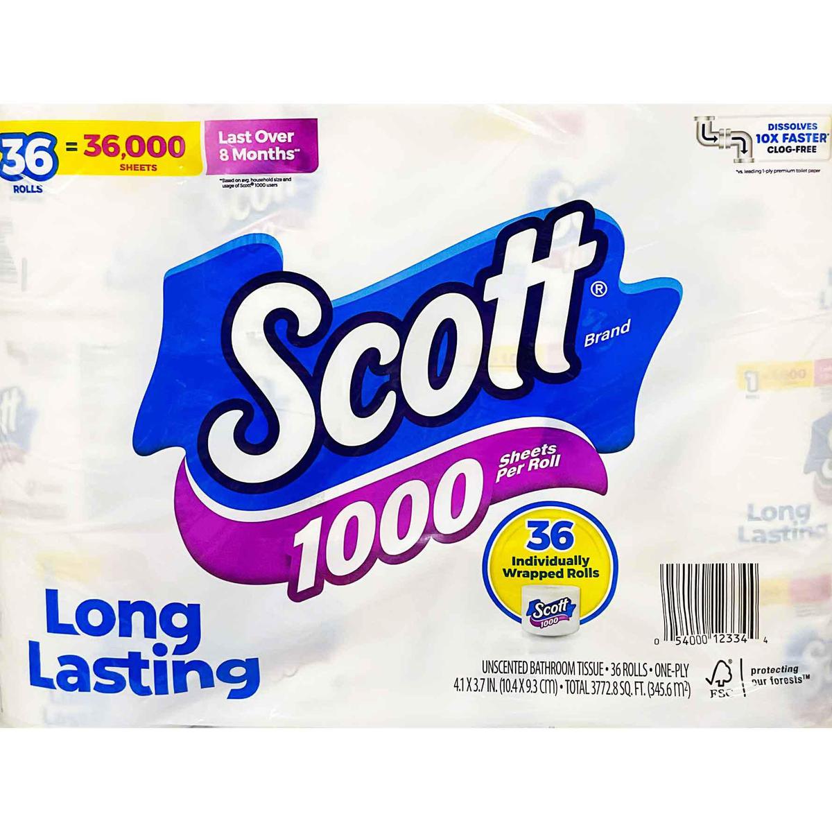 SCOTT BRAND 1000 SHEETS PER ROLL LONG LASTING PAPER