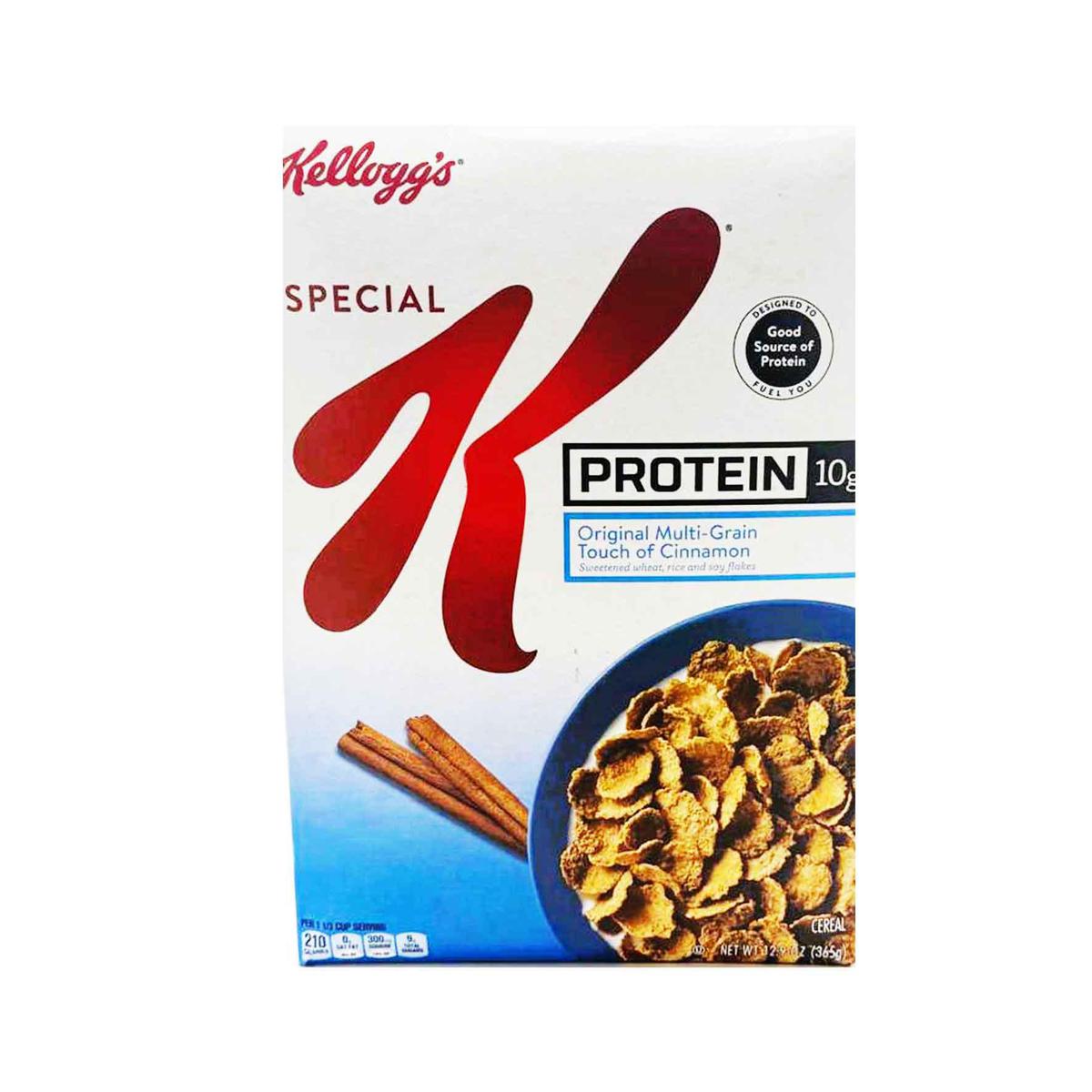 KELLOGG'S SPECIAL K PROTEIN CINNAMON SWEETENED WHEAT RICE AND SOY FLAKES